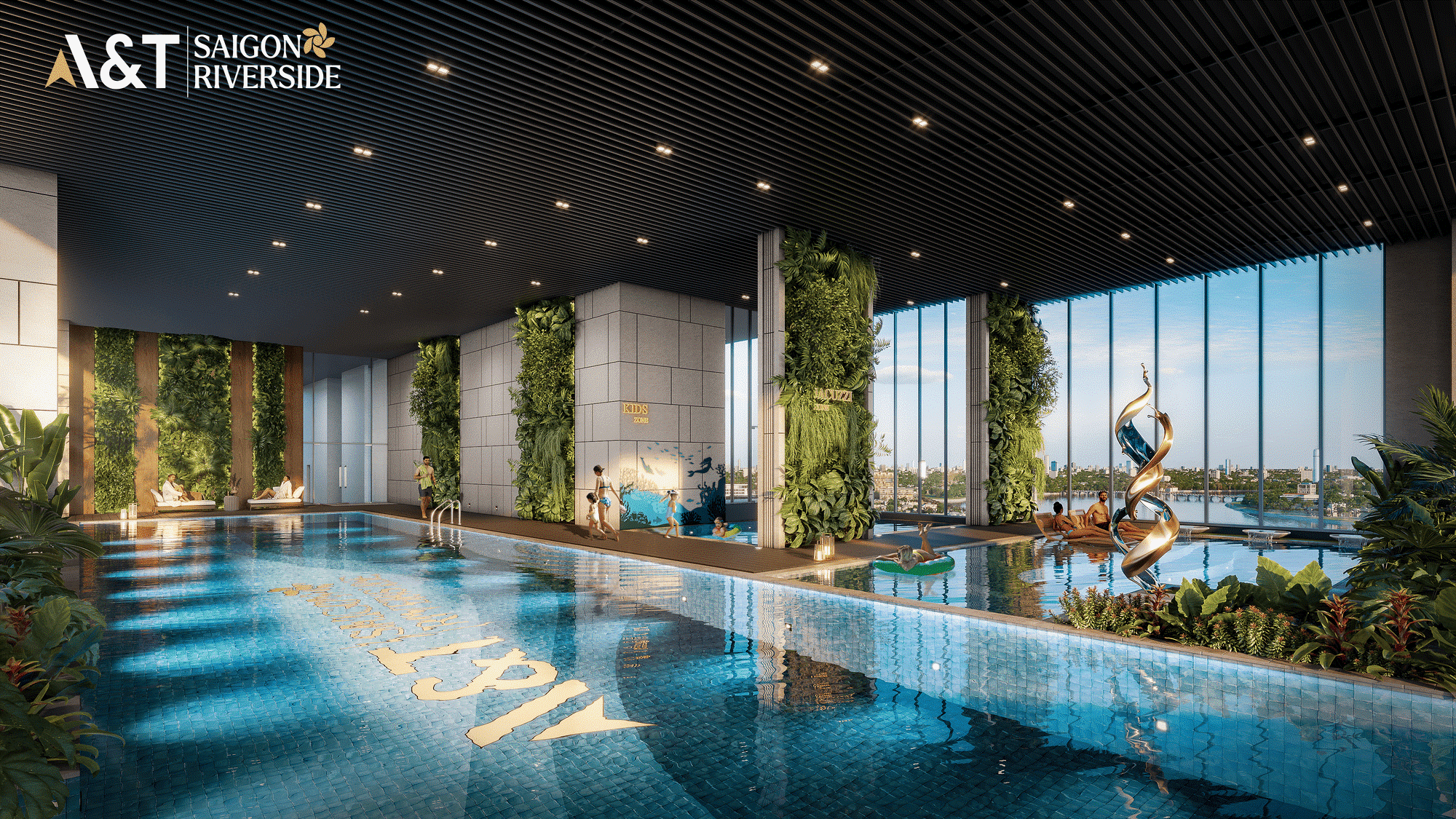 Là biểu tượng cho phong cách “sống nghỉ dưỡng giữa lòng phố thị”, A&T Saigon Riverside sở hữu BST hơn 50 tiện ích nội khu đậm chất resort trải dài xuyên suốt 8 tầng từ tầng hầm đến tầng thượng. Đặc biệt, tầng 21 là “ốc đảo giữa tầng mây” – nơi quy tụ các tiện ích cao cấp nhất: hồ bơi muối khoáng, hồ sục Jacuzzi, hồ bơi trẻ em, sky bridge, khu giải trí, khu thư giãn, phòng gym, yoga, thư viện, golf 3D, khu vui chơi trẻ em… Tại tầng thượng, mỗi khu vực đều mang đến một cung bậc cảm xúc khác nhau, là thế giới riêng tư giữa trời, được bố trí tách biệt giữa không gian “tĩnh” và “động” như: Lotus Bar, BBQ Sky Garden, Vườn 5 giác quan, khu yoga & thiền… Tất cả tạo nên hành trình sống nghỉ dưỡng đa tầng trải nghiệm, giúp cư dân tận hưởng trọn vẹn từ vận động đến an yên, từ kết nối đến riêng tư.